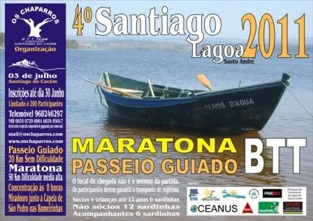 Os Chaparros Btt Team Associação na sequência do cumprimento do plano de actividades, vem por este meio informar que será realizado o 4º Santiago_lagoa (maratona e passeio guiado), Assim contamos convosco mais uma ano neste evento de verão onde podem após uma volta pela serra em bicicleta disfrutar das excelentes praias da lagoa ou mesmo do mar que estão anexas.