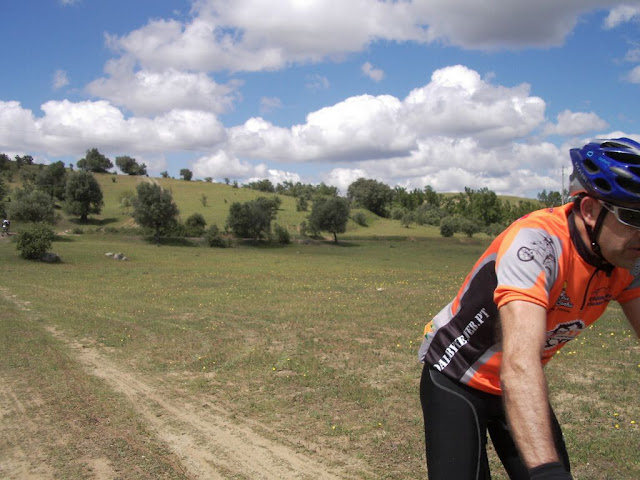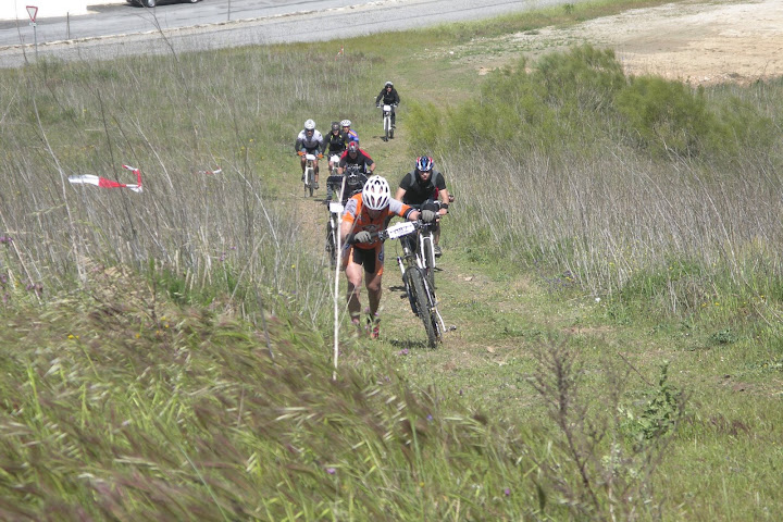 Fiquei deslumbrado com as paisagens magnificas em todo o percurso e só tenho pena não ter tirado fotos na 1ª metade, onde encontrei uns pedragulhos enormes por onde serpenteava-mos. Uma dupla subida a meio que fez descer muita gente. A segunda metade com uns prados verdejantes e com uns malmequeres a constatar. No final, mais um must com a subida ao castelo, que grande parte pernas. A volta ao castelo e a acabar uma descida vertiginosa por entre as ruas da vila e sempre a abrir. Diz-me o Pedro Salvador, ia com tal velocidade que ao passar num cruzamento onde teria que virar à esquerda, o rapaz da organização só dizia: Ai que este não vai fazer a curva. Ai que este não vai fazer a curva.